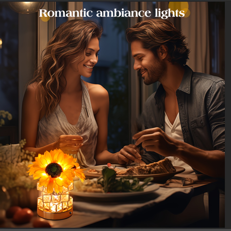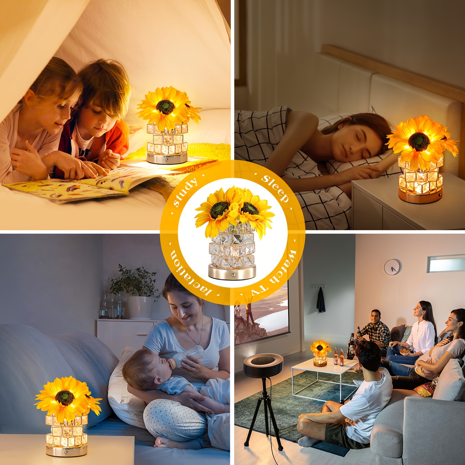 1pc Vibrant Sunflower Touch Lamp – Stylish Rechargeable & Cordless Design with 3-Color Infinity Dimming – Perfect Unique Gift for Valentines Day, Mothers Day, Christmas, or Birthday Celebrations