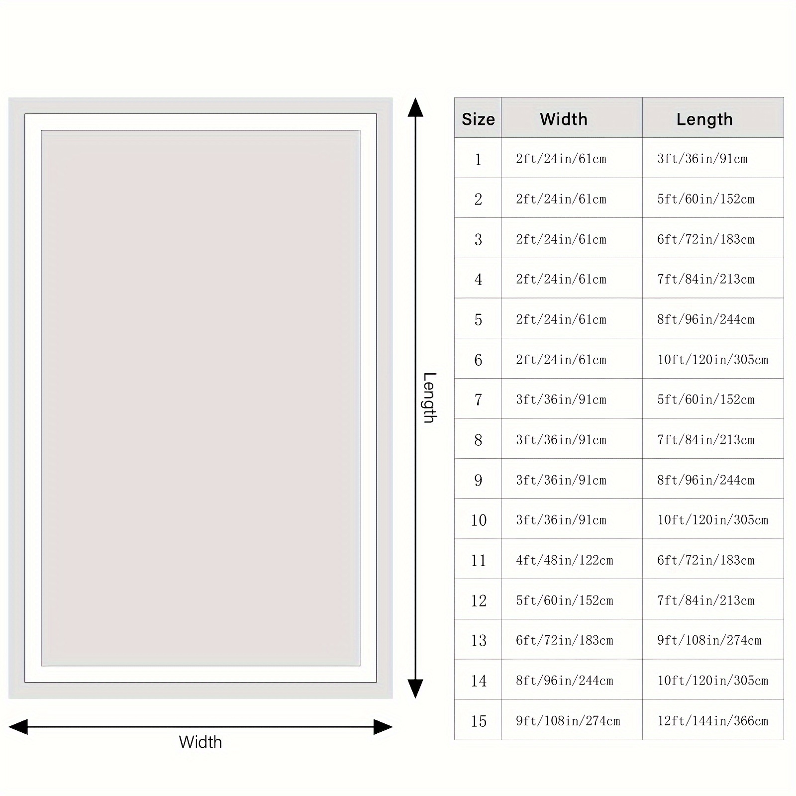 24*36in/61*91cm, 24*60in/61*152cm, 24*72in/61*183cm, 36*60in/91*152cm, 48*72in/122*183cm, 60*84in/152*213cm, 72*108in/182*274cm, 96*120in/243*304cm