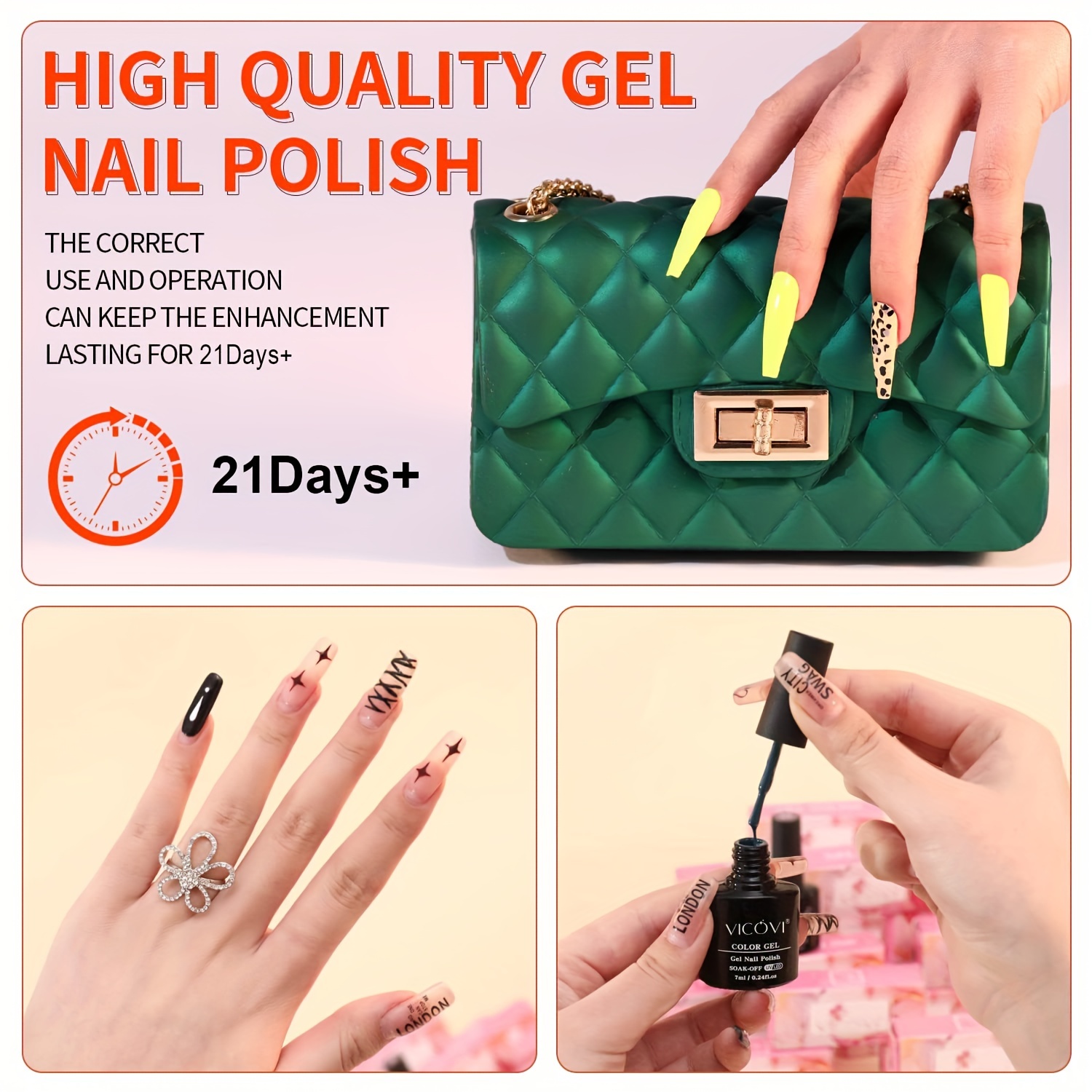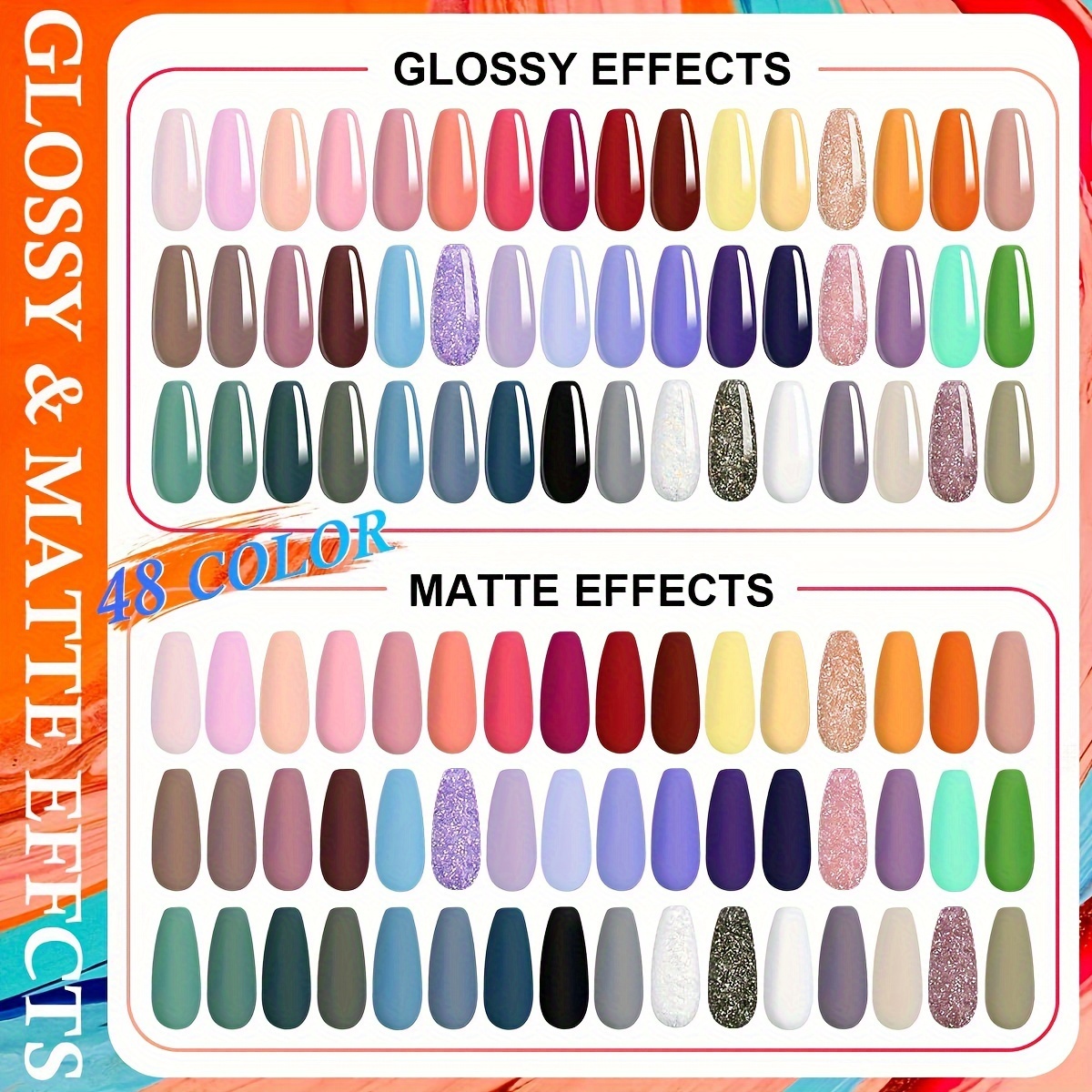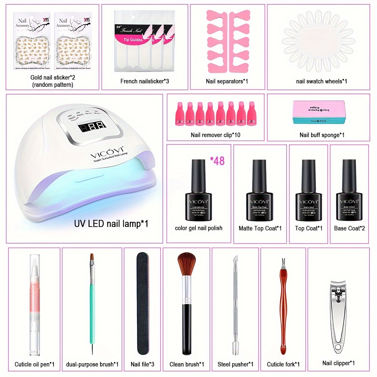 48 Colors Gel Polish Set with 36W Nail Light Curing Lamp – Lead-Free, Unscented, Soak-Off Base Coat & Top Coat – DIY Gel Nail Kit for Beginners at Home with Manicure Tools – vicovi Gel Nail Set