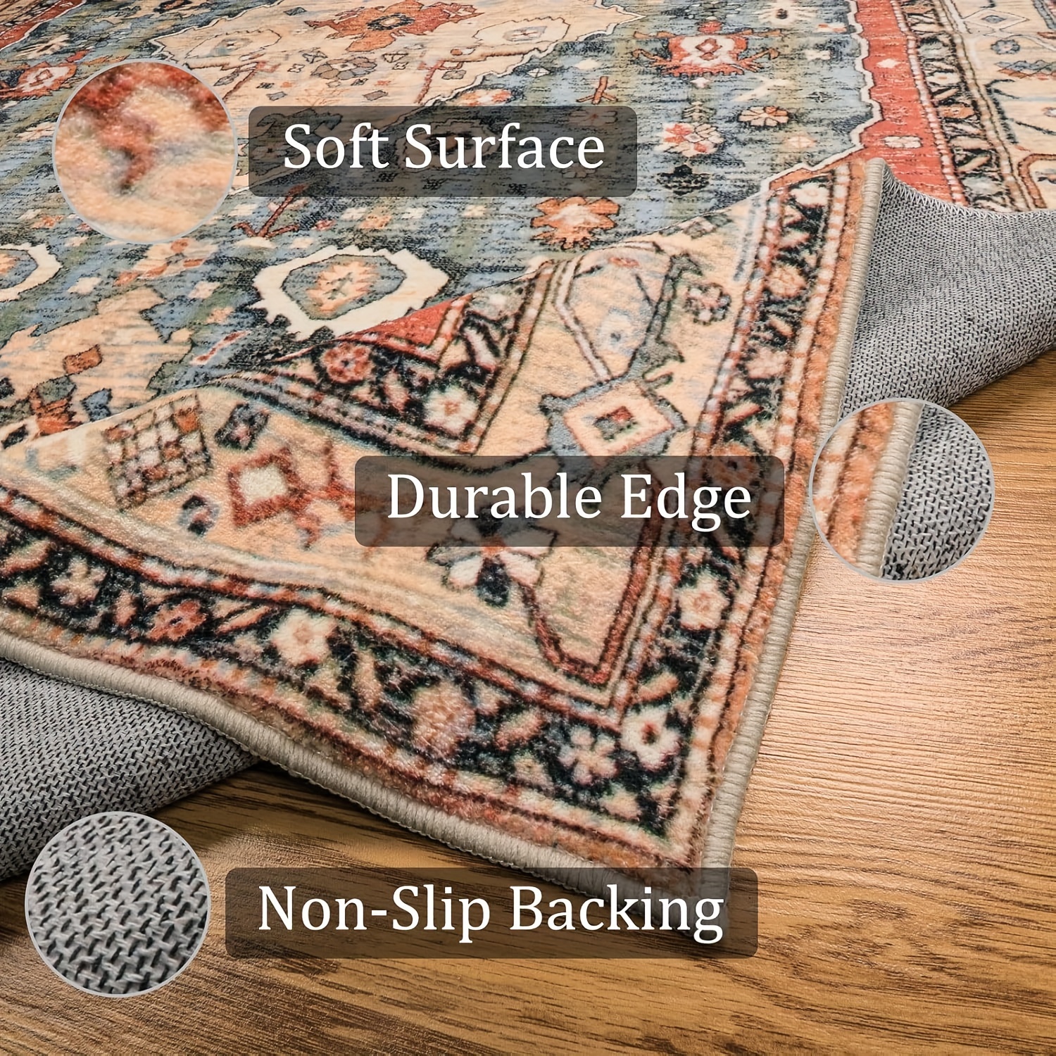 Luxurious Tribal Washable Rug – Large Boho Area Rug for Living Room, Non-Slip, Vintage Soft, Distressed Design, Indoor Floor Carpet for Bedroom, Bathroom, Kitchen – Easy to Clean, Durable, and Pet-Friendly