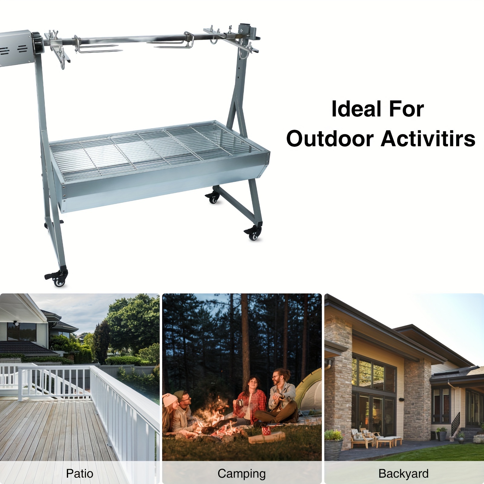 Rotisserie Grill With Wind Screen Roaster BBQ Outdoor Pig Lamb Rotisserie Roaster 132LBSu002F60KG Stainless Steel Charcoal Spit Rotisserie Roaster Grill For Camping Outdoor Barbecue