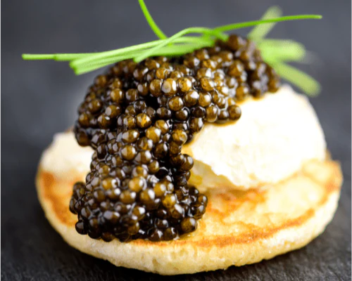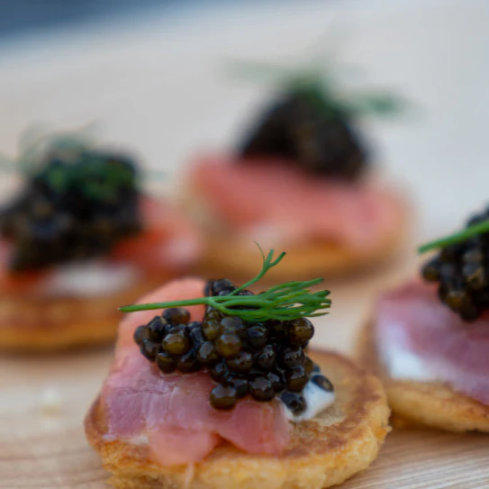 Indulge in the luxurious combination of Imperial Ossetra and Imperial Beluga Hybrid caviars, each renowned for their buttery, velvety textures and delicate flavors.