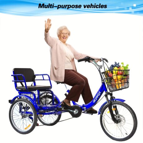 Adult Tricycle 7 Speed, 20 Inch 3 Wheel Bikes Folding Tricycle For Adults For Womenu002FMenu002FSeniors, Fork Shock Absorption Wheel Bike Wu002FFront&Rear Basket For Shopping